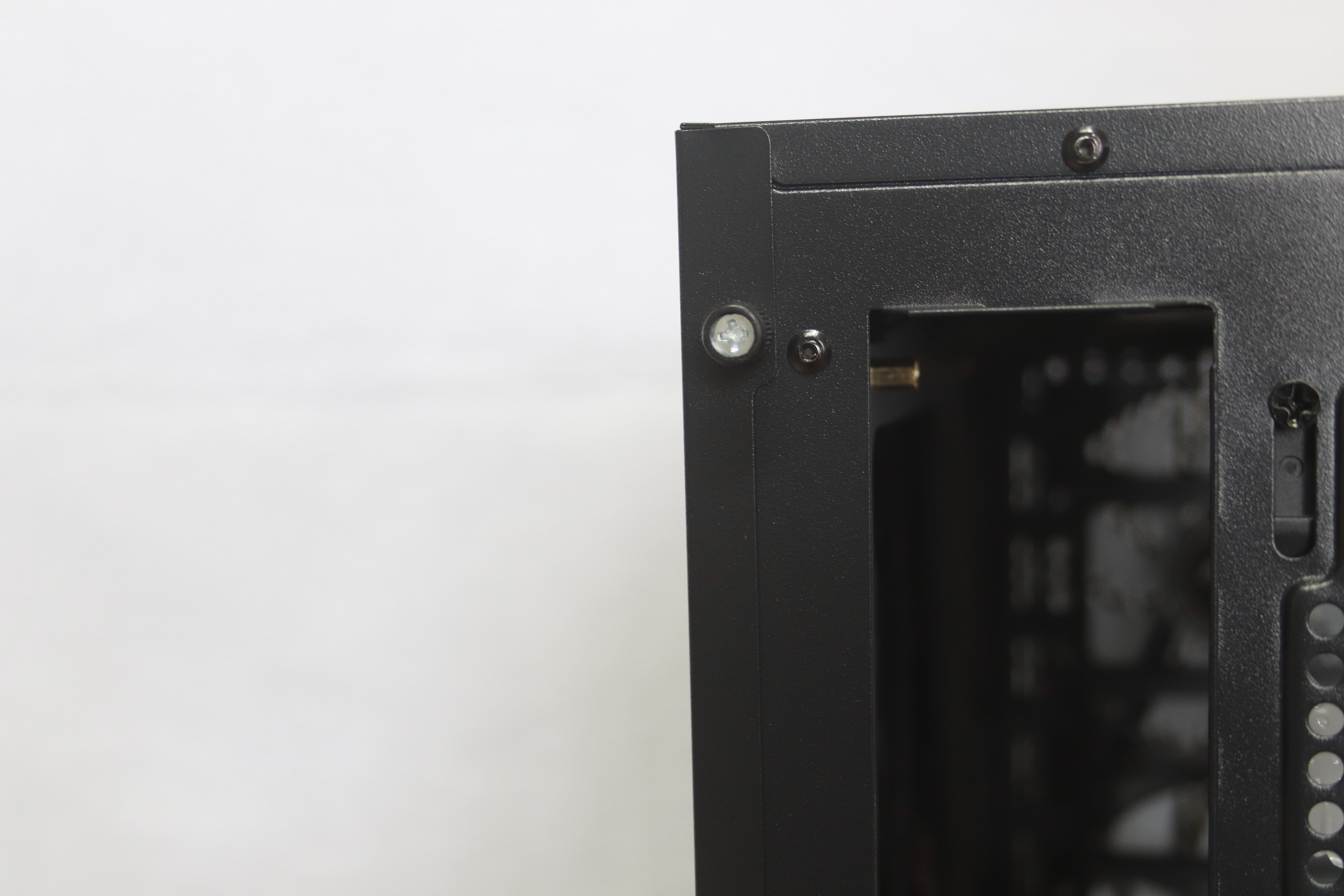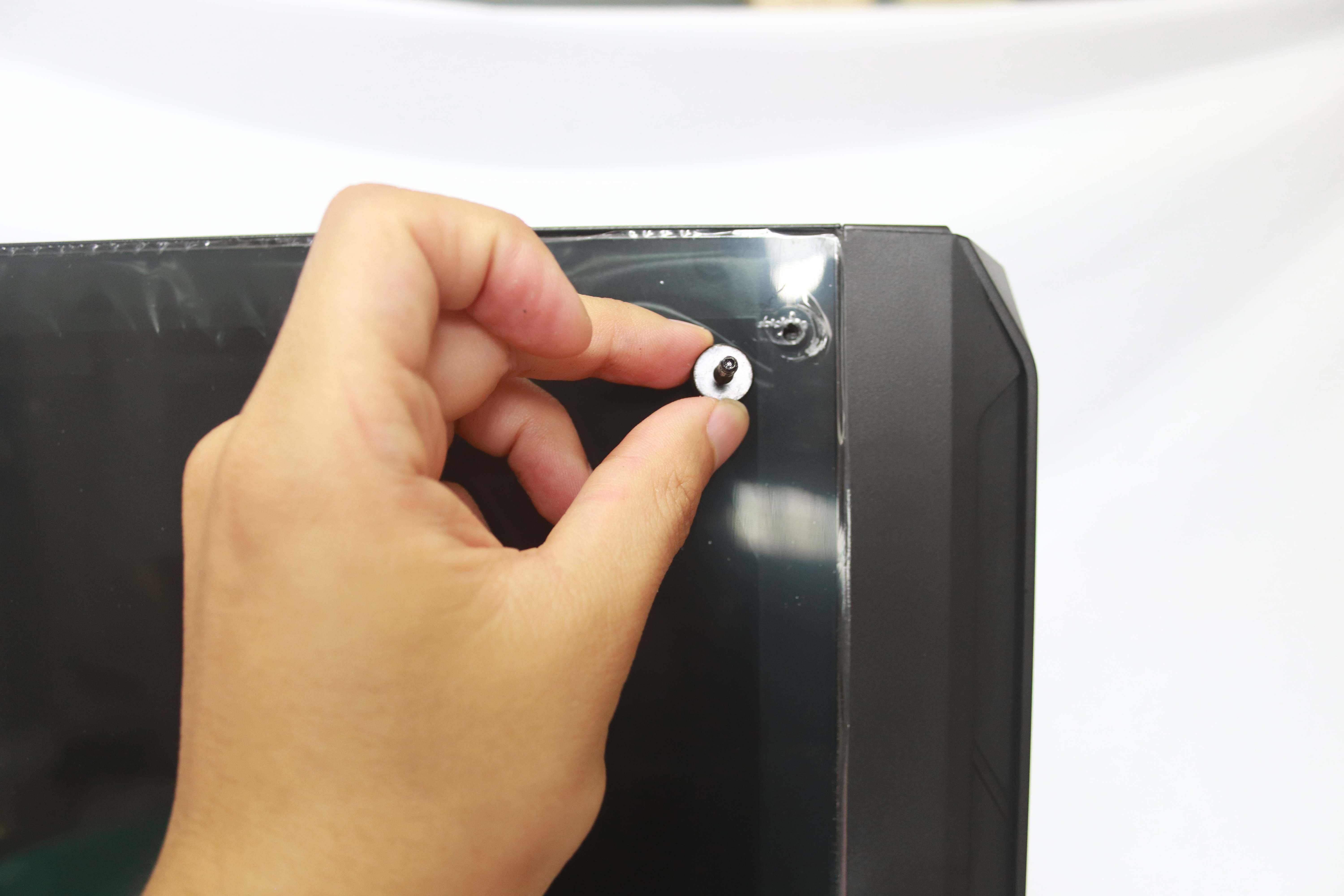 좌측 아크릴 패널은 핸드 스크류 방식과 드라이버를 사용할 수 있도록 십자홈이 있으며 손으로 하거나 드라이버로 하거나 둘다 사용을 할 수 있어 편의성을 높였다.