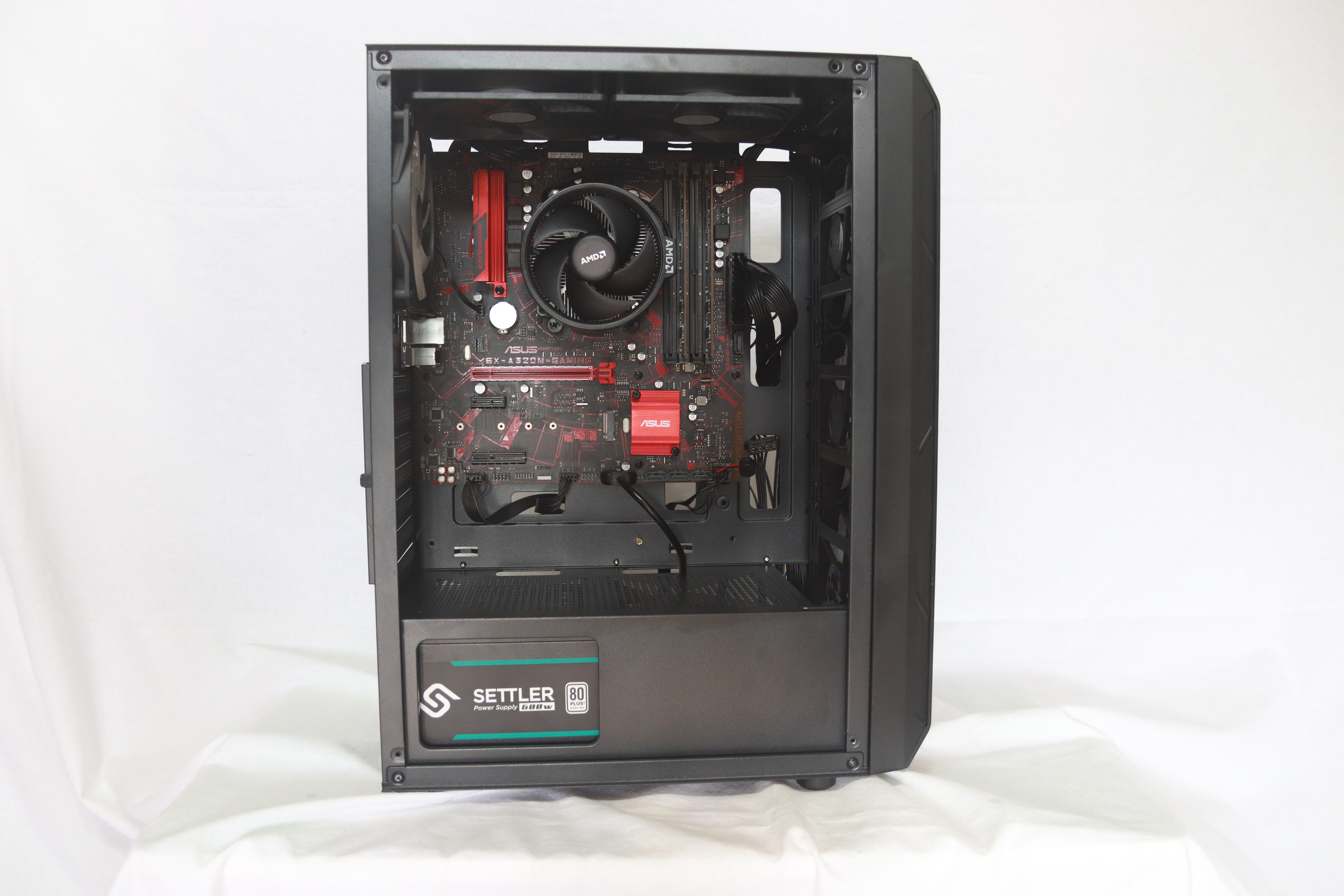 파워 서플라이쪽에는 고무 패드가 붙어 있어 진동과 소음을 줄여줄 것으로 기대되는데 3만원 대의 가성비를 생각했을때 소소한 부분까지 잘 신경을 썼다는 것을 알 수 있다.