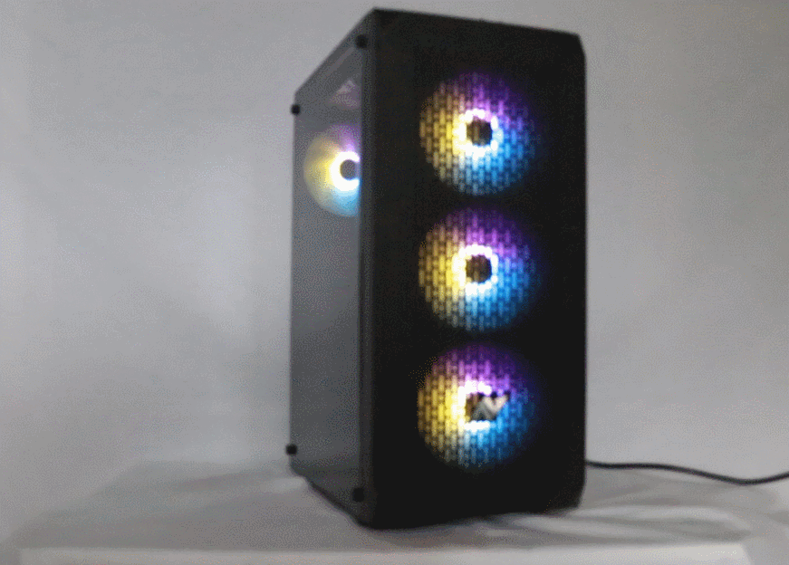 후면에는 루나르 LED 120mm 팬이 1개 전면에는 3개를 제공하며 상단에는 블랙 기본 팬 2개를 제공해 총 4개의 기본 LED 팬 2개의 기본 블랙팬 하여 총 6개의 기본 팬이 제공된다.