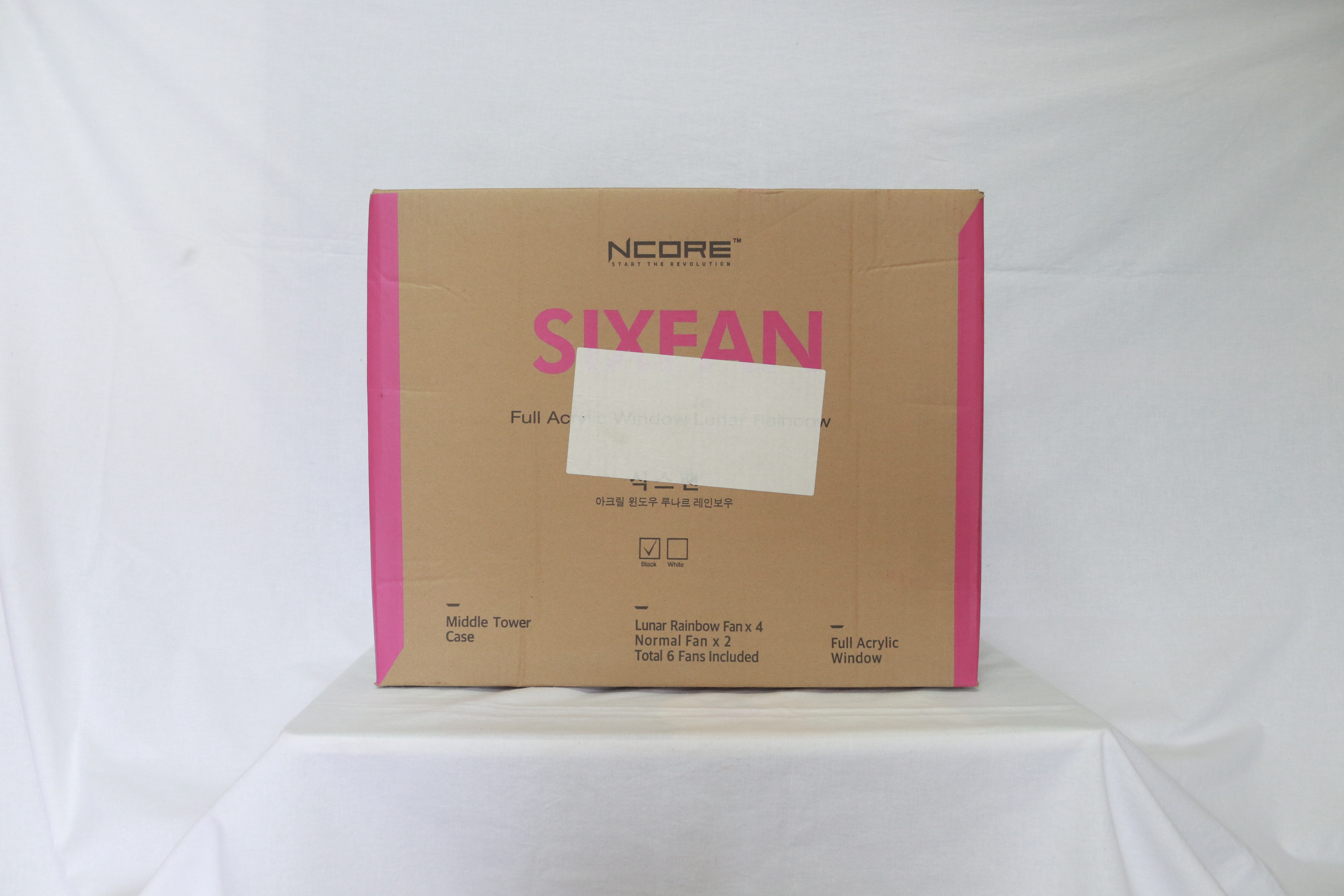 정확히 언제 출시가 되었는지는 기억이 나지는 않으나 작년 11월 12월즈음으로 기억을 하는데 출시 이후에 엄청난 파란으로 사용자들에게 다가왔던 ABKO NCORE 식스팬 풀 아크릴 LUNAR는 3만원 초반의 구성에 이름에도 알 수 있듯이 총 6개의 팬을 기본으로 장착해 나온 케이스로 3만원 최강의 가성비를 자랑하는 케이스로 손에 꼽힌다. 더욱이 식스팬이 출시된 후 보급형 가격대의 케이스에서는 6개의 팬을 기본으로 주는 것이 유행처럼 퍼져 새로 출시되는 보급형 케이스는 대부분 6개의 팬이 아니면 보지않을 정도가 되지 않았나 싶다.