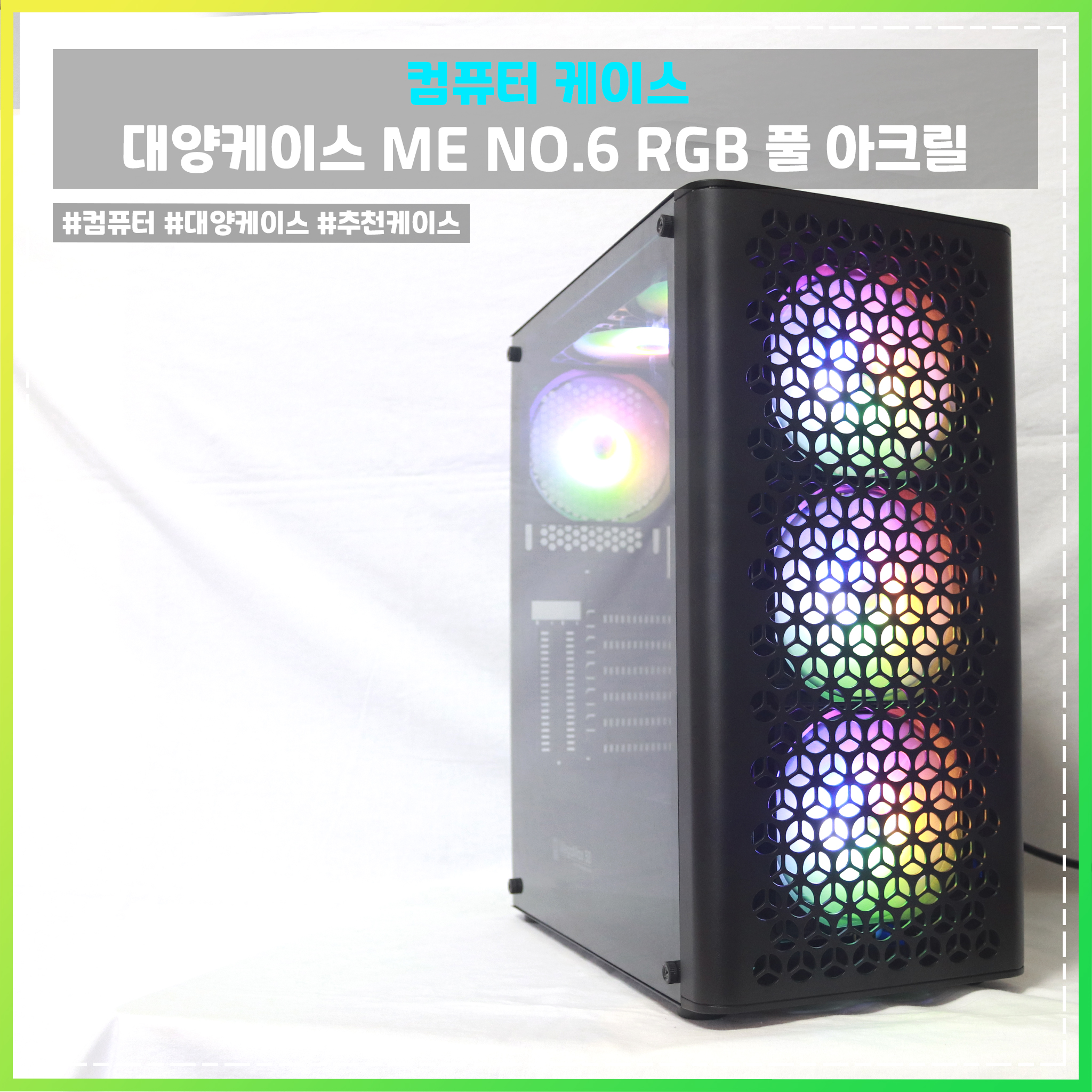 그럼 화려한 RGB 팬 6개를 담은 대양케이스 ME NO.6 RGB 풀 아크릴에 대해서 알아보도록 하자.
