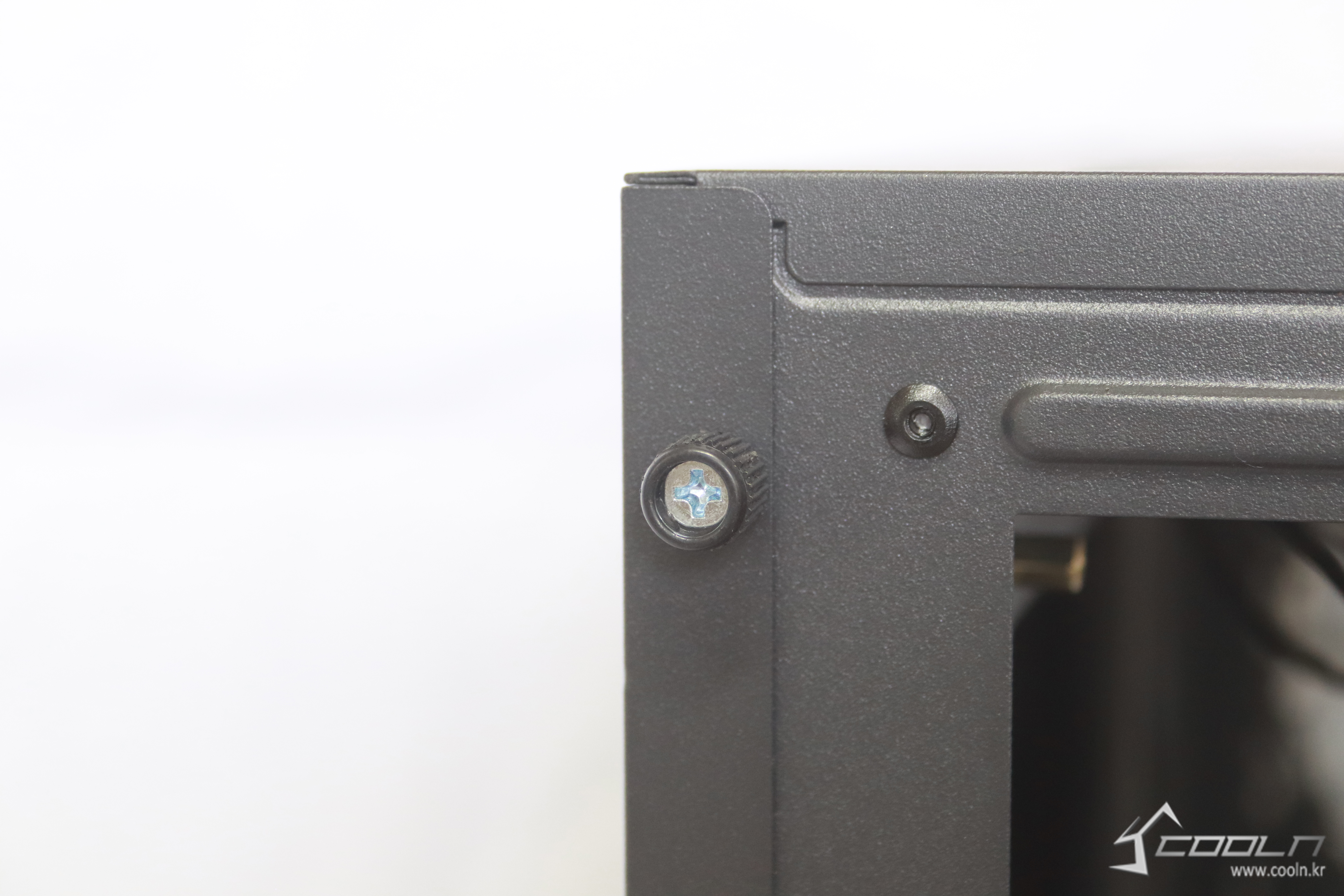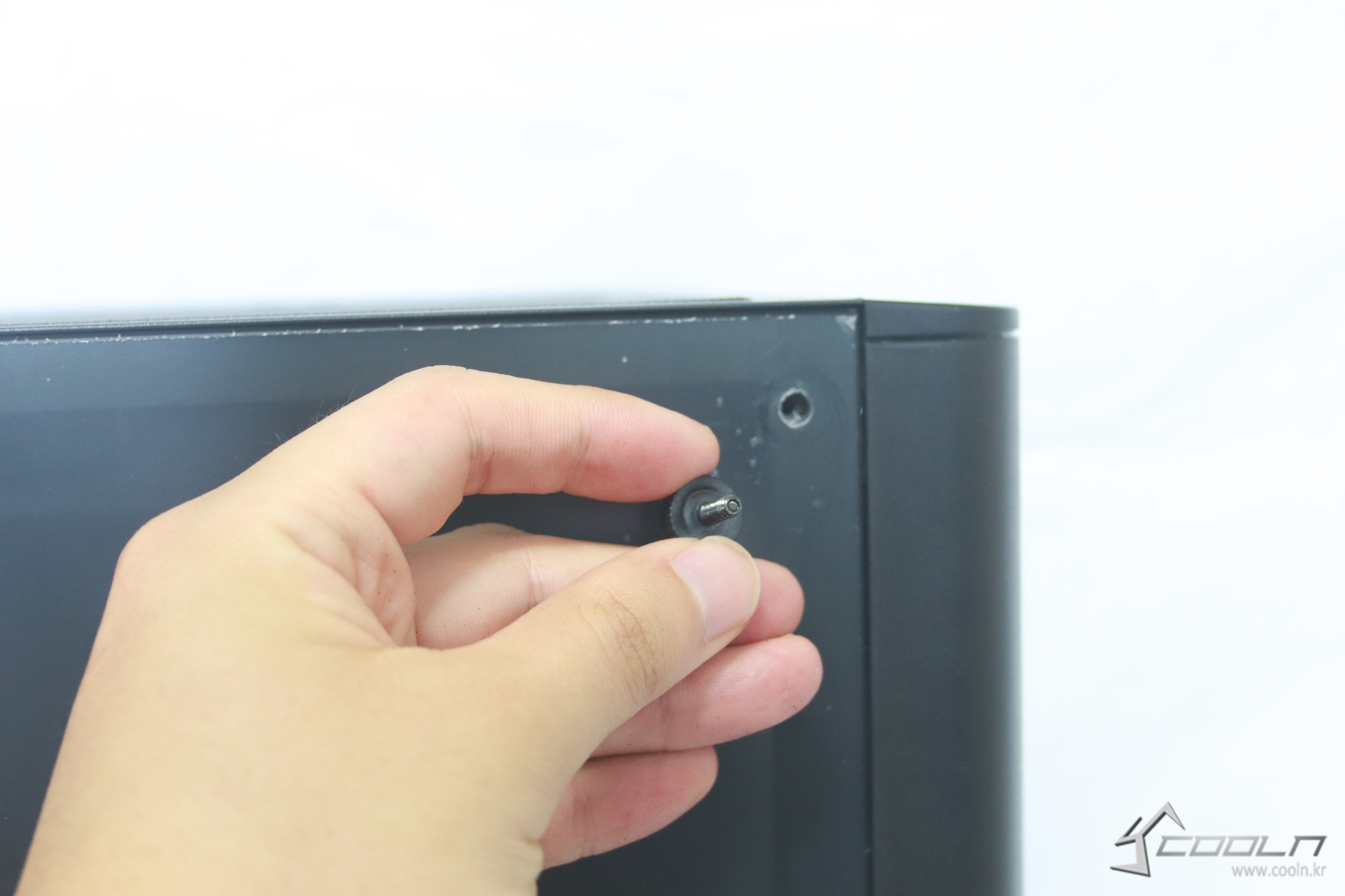 좌측 아크릴 패널을 고정하는 스크류는 십자홈이 있는 핸드 스트큐방식을 채택하여 손으로도 조립가능 하지만 드라이버를 사용하여 스크류를 고정한다면 더욱 단단한 고정을 할 수 있다.