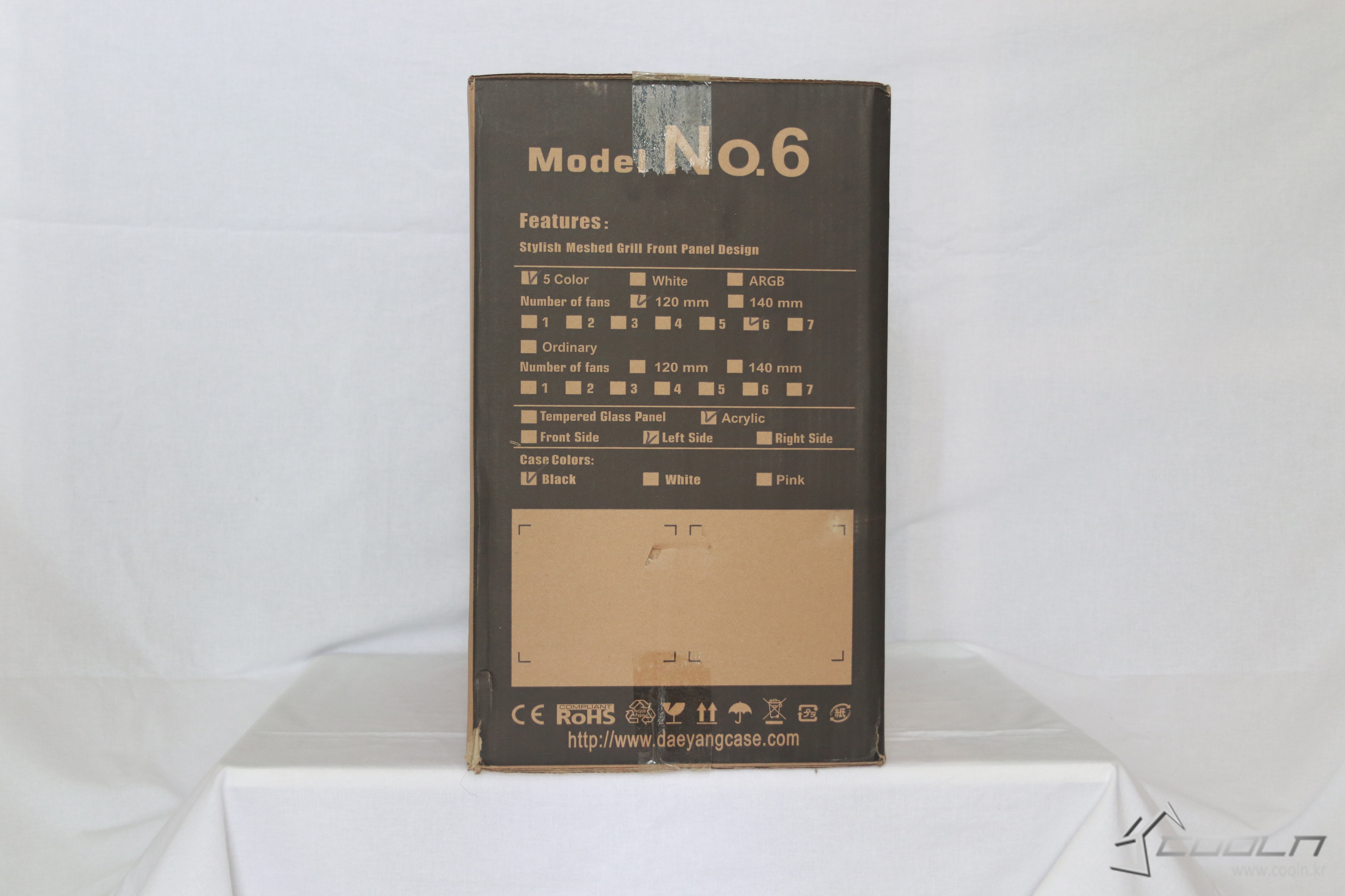 박스의 좌측, 우측면에는 대양케이스 ME NO.6 RGB 풀 아크릴에 대한 이름과 세세한 정보들이 적혀 있어 패키징만 보아도 대략 박스안에 어떤 제품이 들어있는지 알 수 있다. 요즘은 대부분 인터넷으로 주문을하니 실물 박스를 볼일이 없긴하지만 그래도 박스에서 정보를 알 수 있는 것이 여전히 좋다고 생각한다.