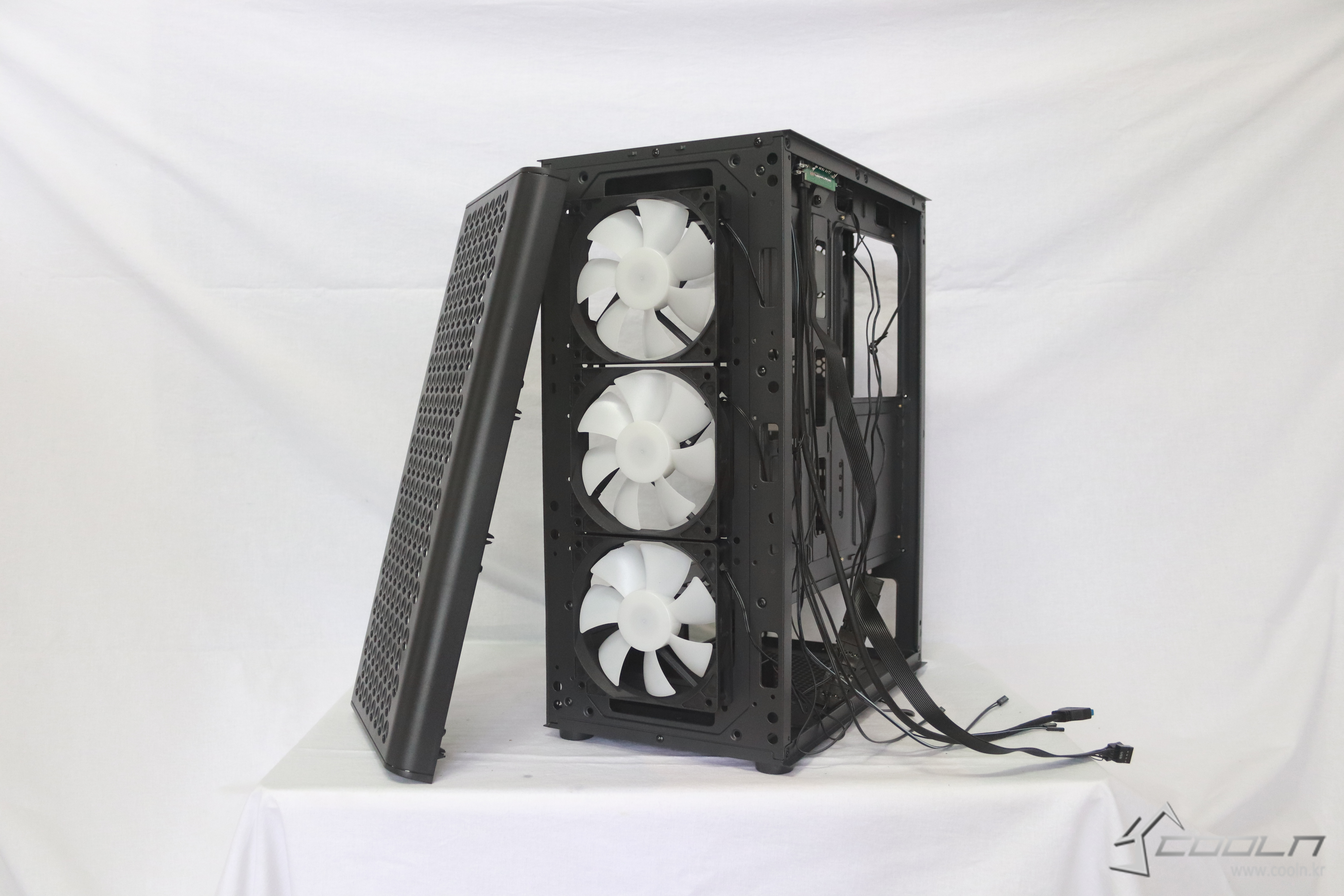 또한 커팅홀이 커 깔끔한 선정리를 할 수 있으며 좌측면에는 아크릴 윈도우를 채택해 내부를 볼 수 있어 내부 역시 화려하게 꾸민 사용자들에게 내부를 실시간으로 확인 할 수 있도록 구성이 되어 있다.