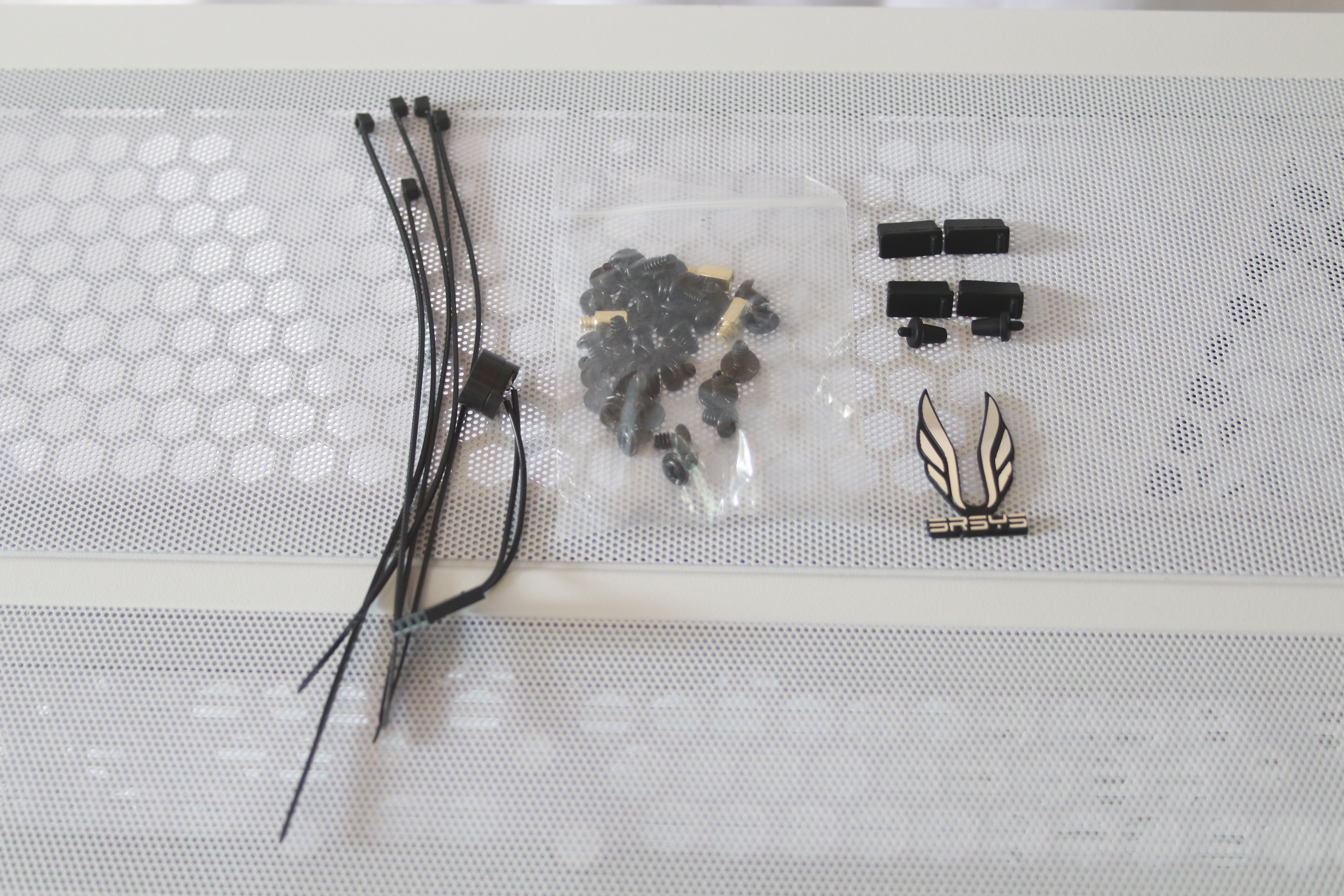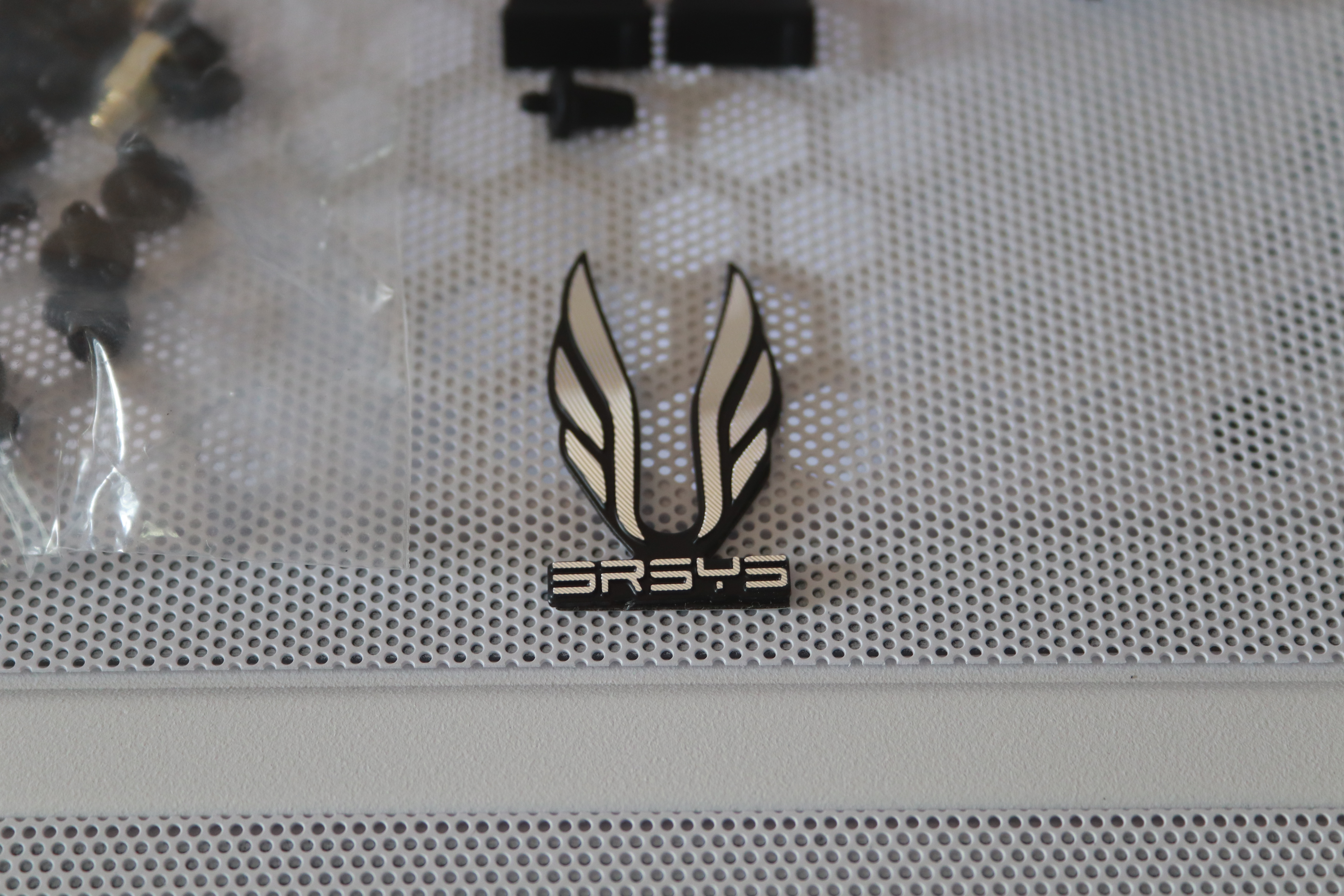 각종 볼트와 케이블 타이 비프음 단자와 3RSYS 스틸 로고 그리고 상단 I/O패널에 유입되는 먼지를 막기위한