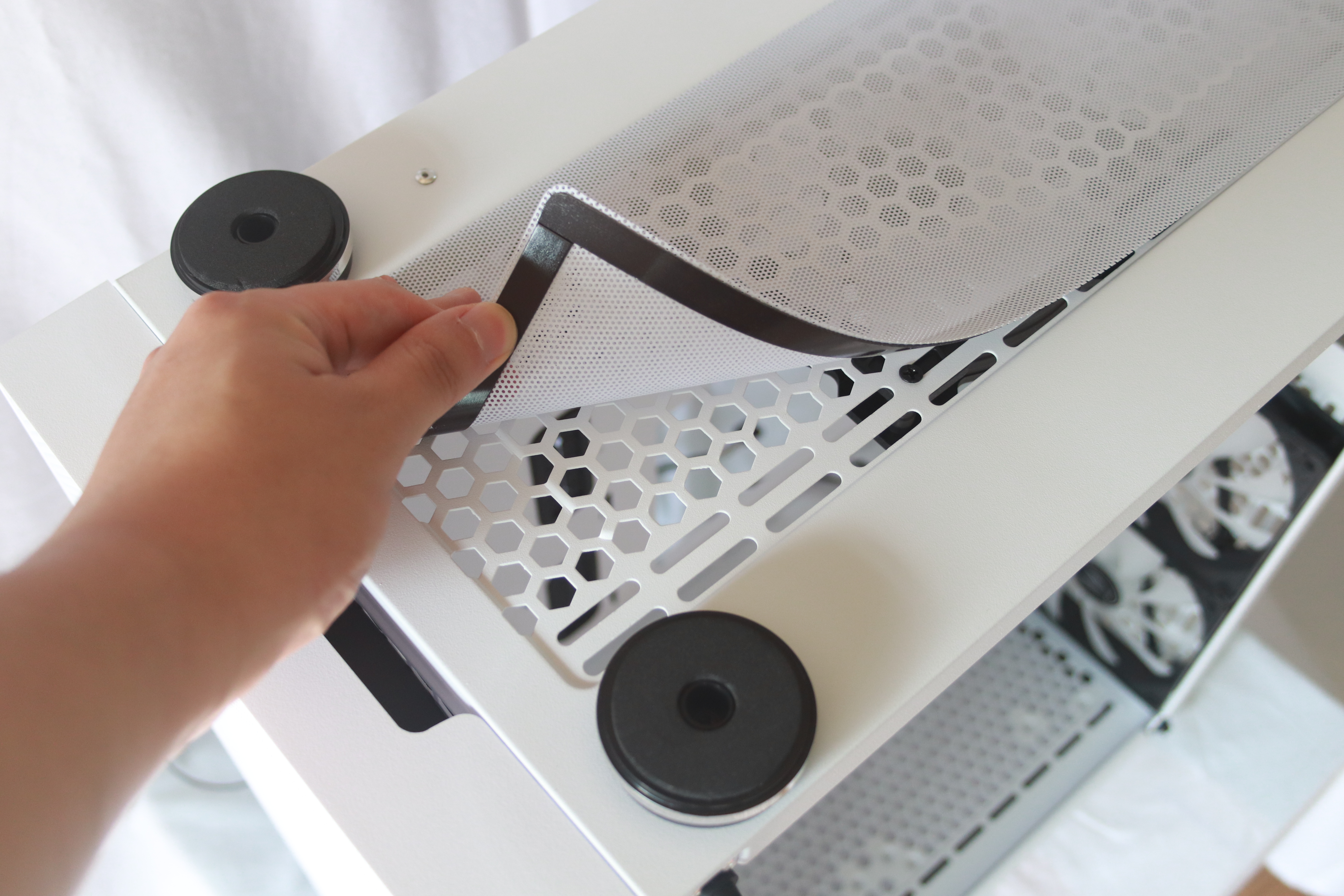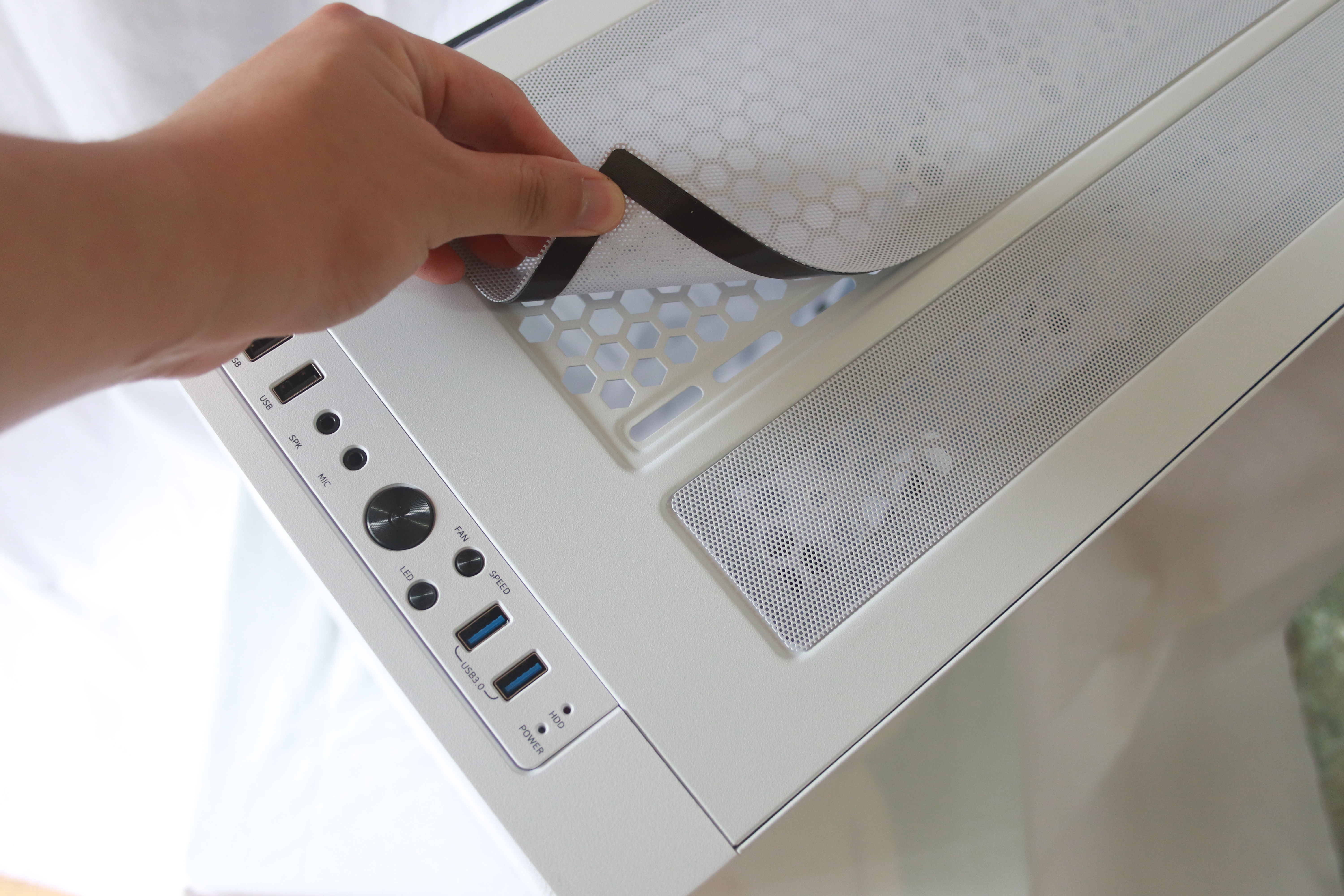 팬을 달 수 있는 나사 홀 역시 존재한다. 상단과 같이 자석으로 된 먼지 유입 방지 필터가 구성되어있다.