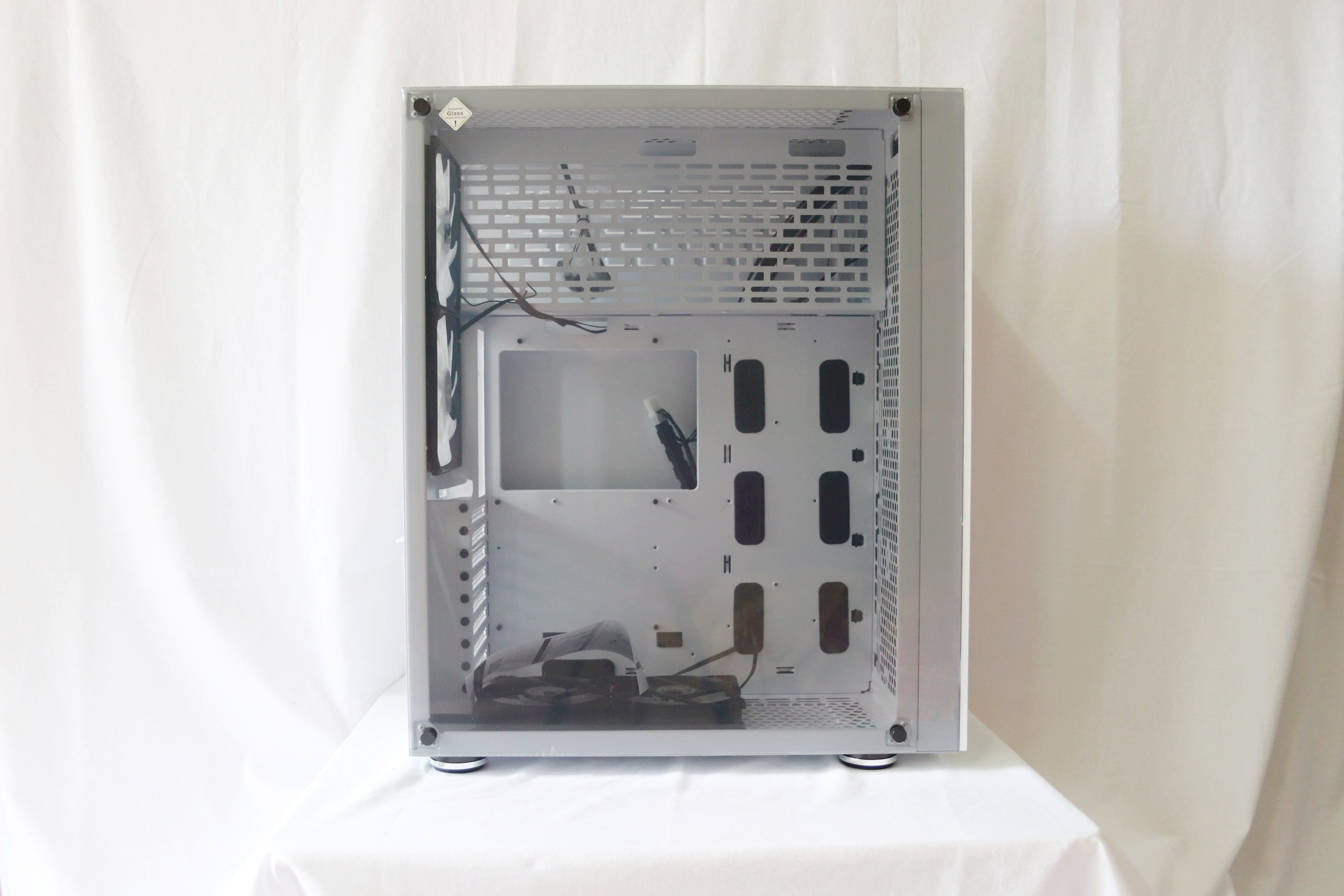 우측 스틸 패널과 좌측 강화유리를 제거하면 스틸로만 남은 내부를 확인 할 수 있는데 내부가 상당히 넓다.