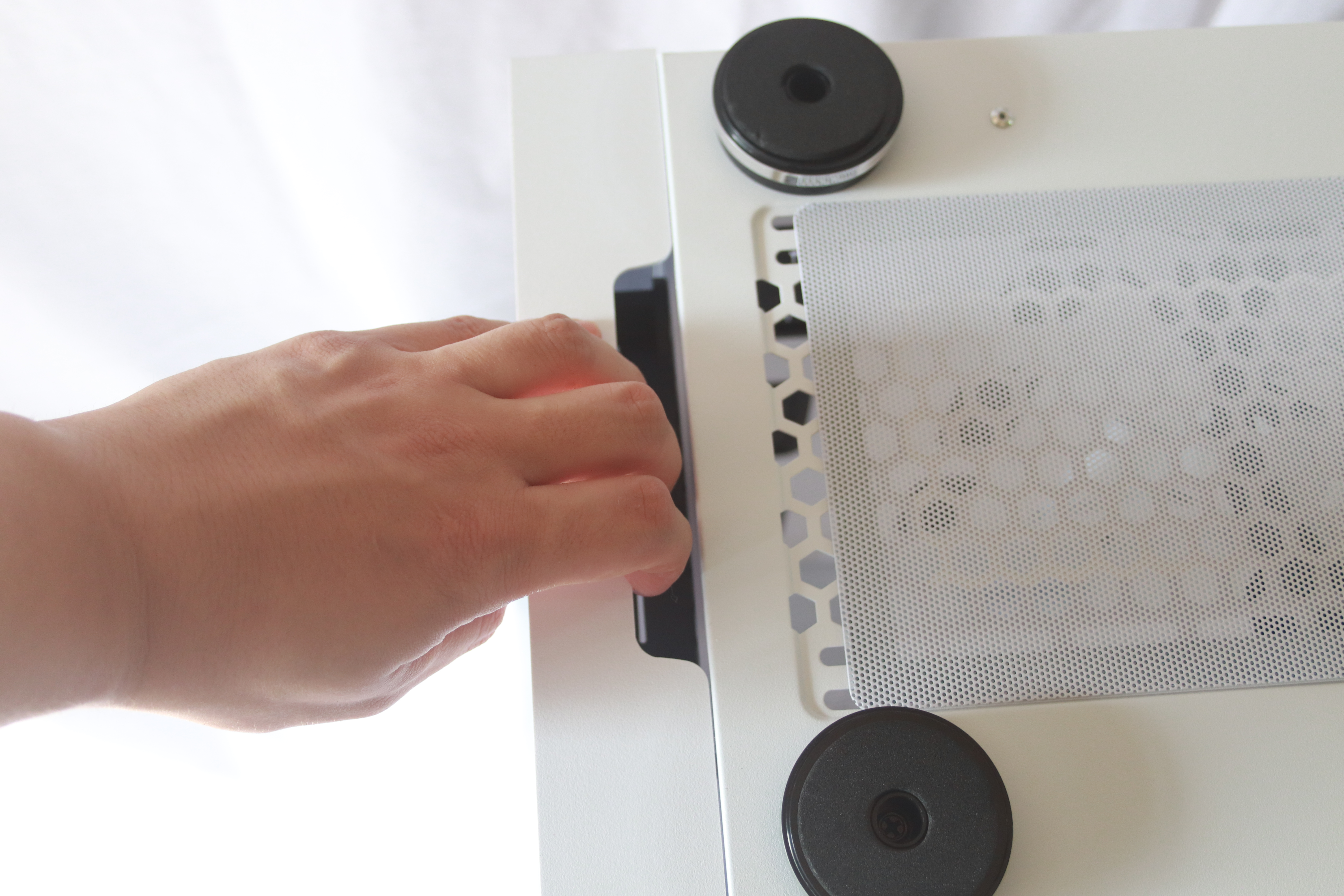 우측 패널의 경우에는 완전 밀폐형 구조는 아니며 측면에 단 팬에서 열기가 빠져 나올 수 있도록 타공되어 있는