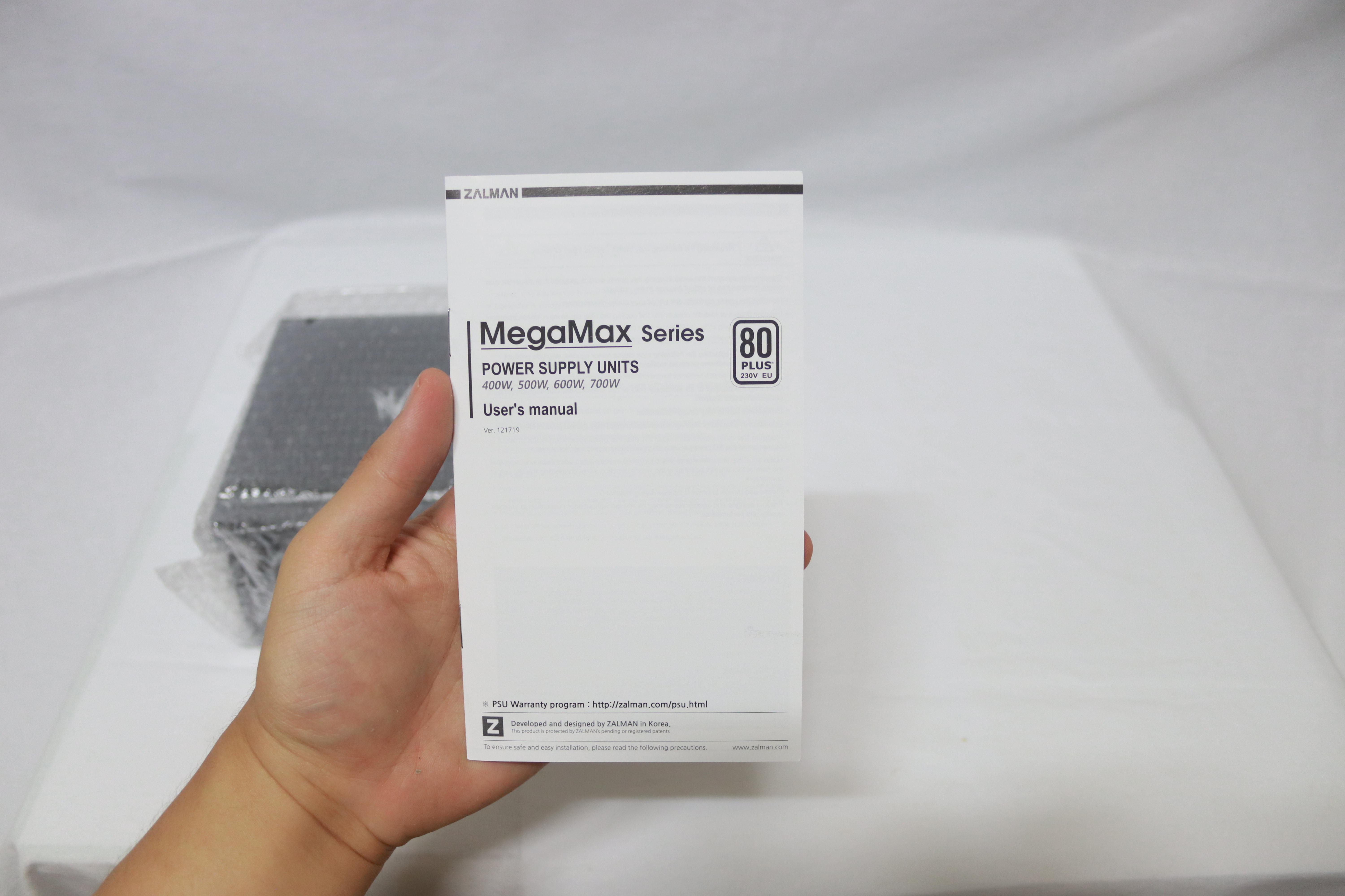 잘만 MegaMax 600W 80PlUS STANDARD 박스를 개봉하게 된다면 보이는 것 처럼 뾱뾱이로 한번더 감싸진 파워 서플라이 본체와 설명서를 만날 수 있다.