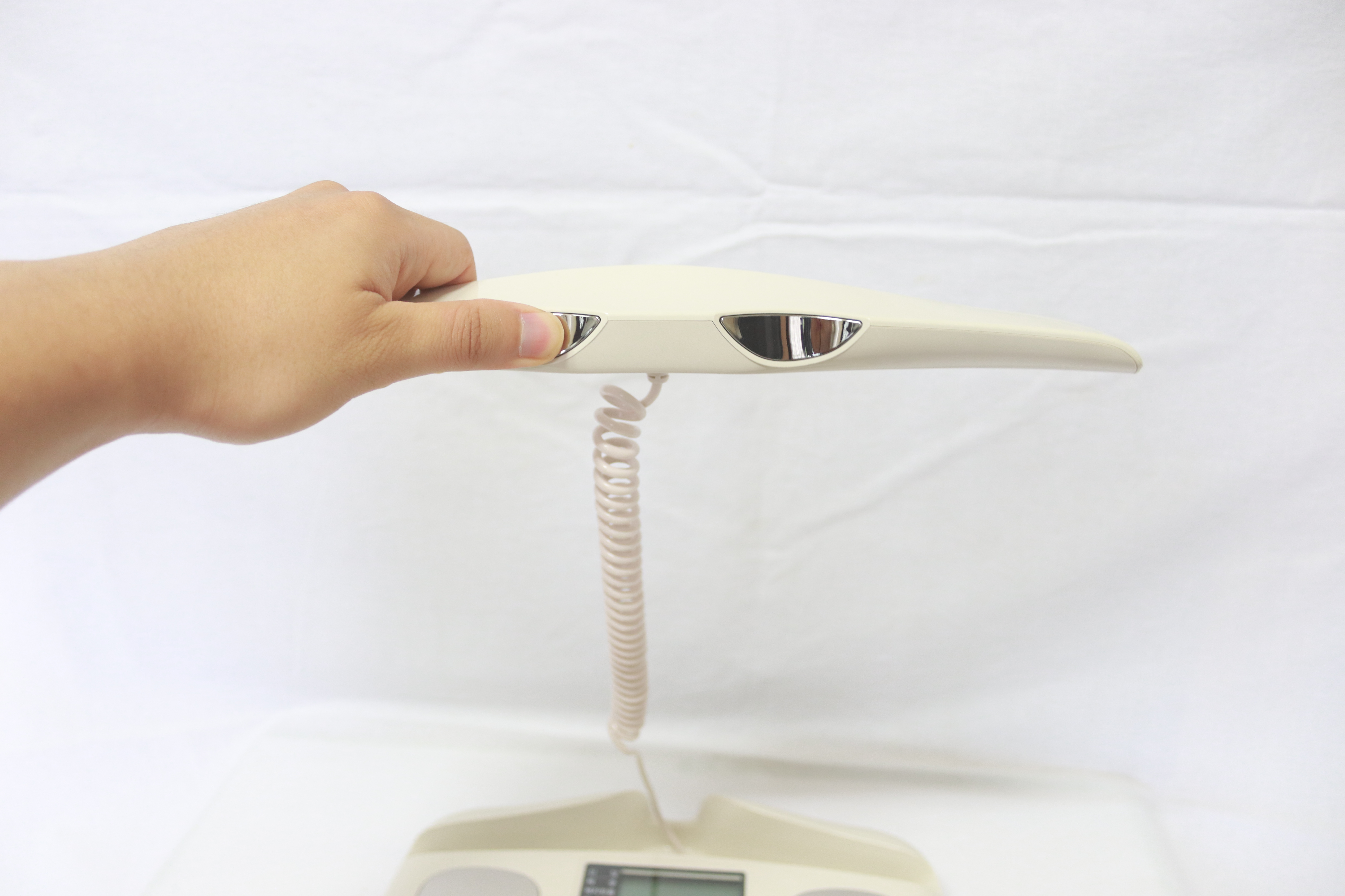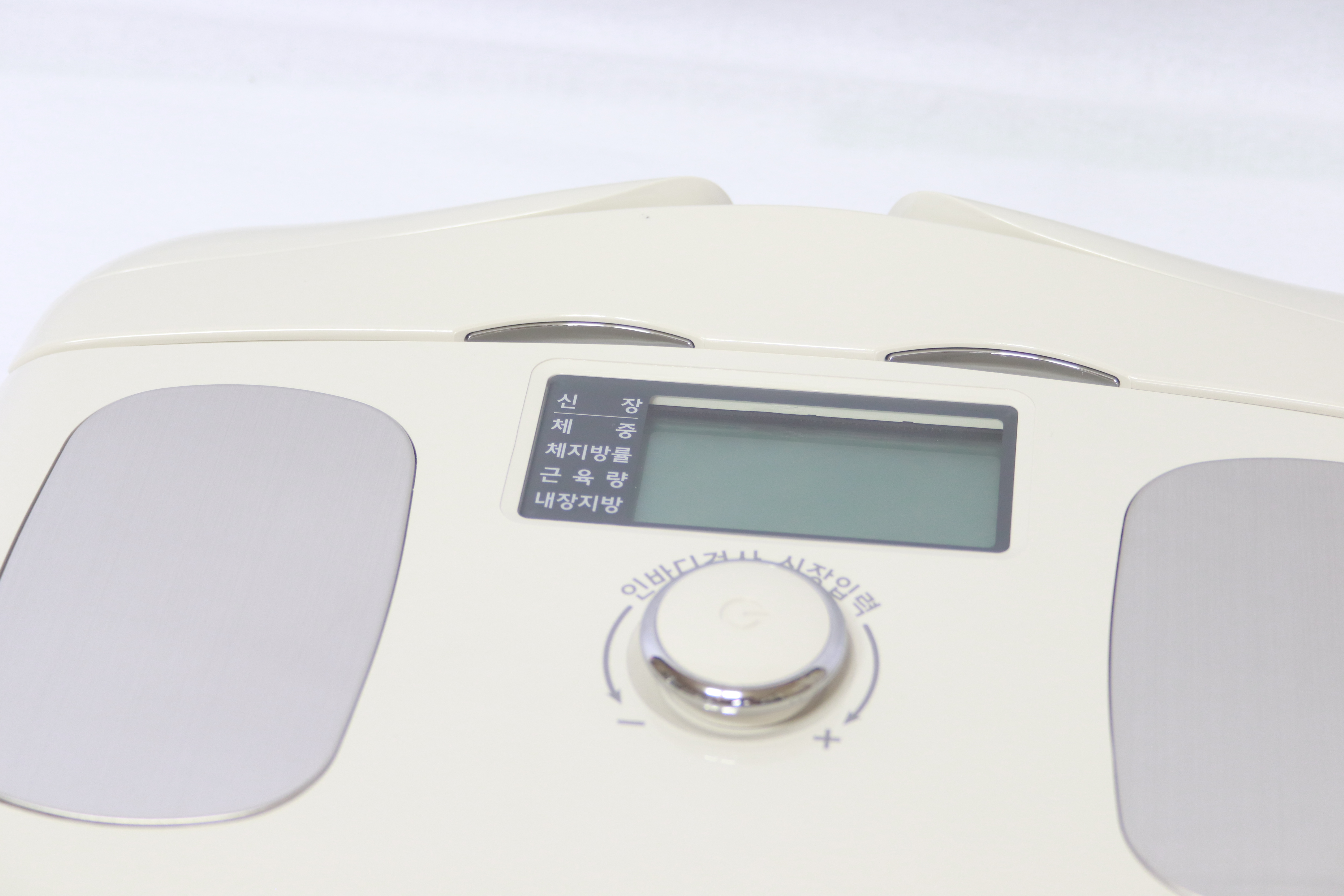 심플하면서도 사람이 잡았을 때 편하도록 손 안에 쏙 안정적으로 들어오는 그립감을 가진 손잡이 입니다. 특히나 인바디 다이얼은 이 손잡이가 중요합니다!