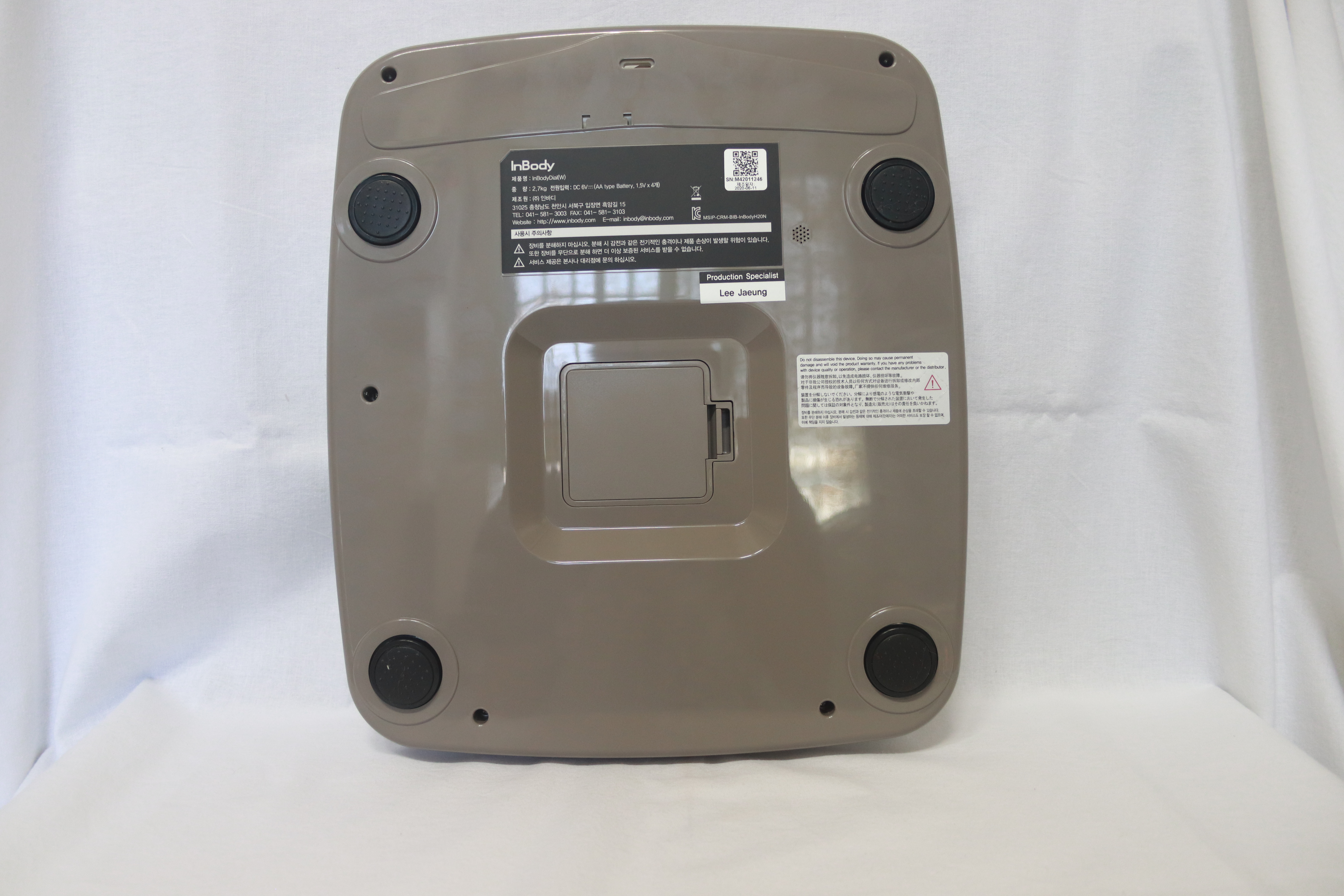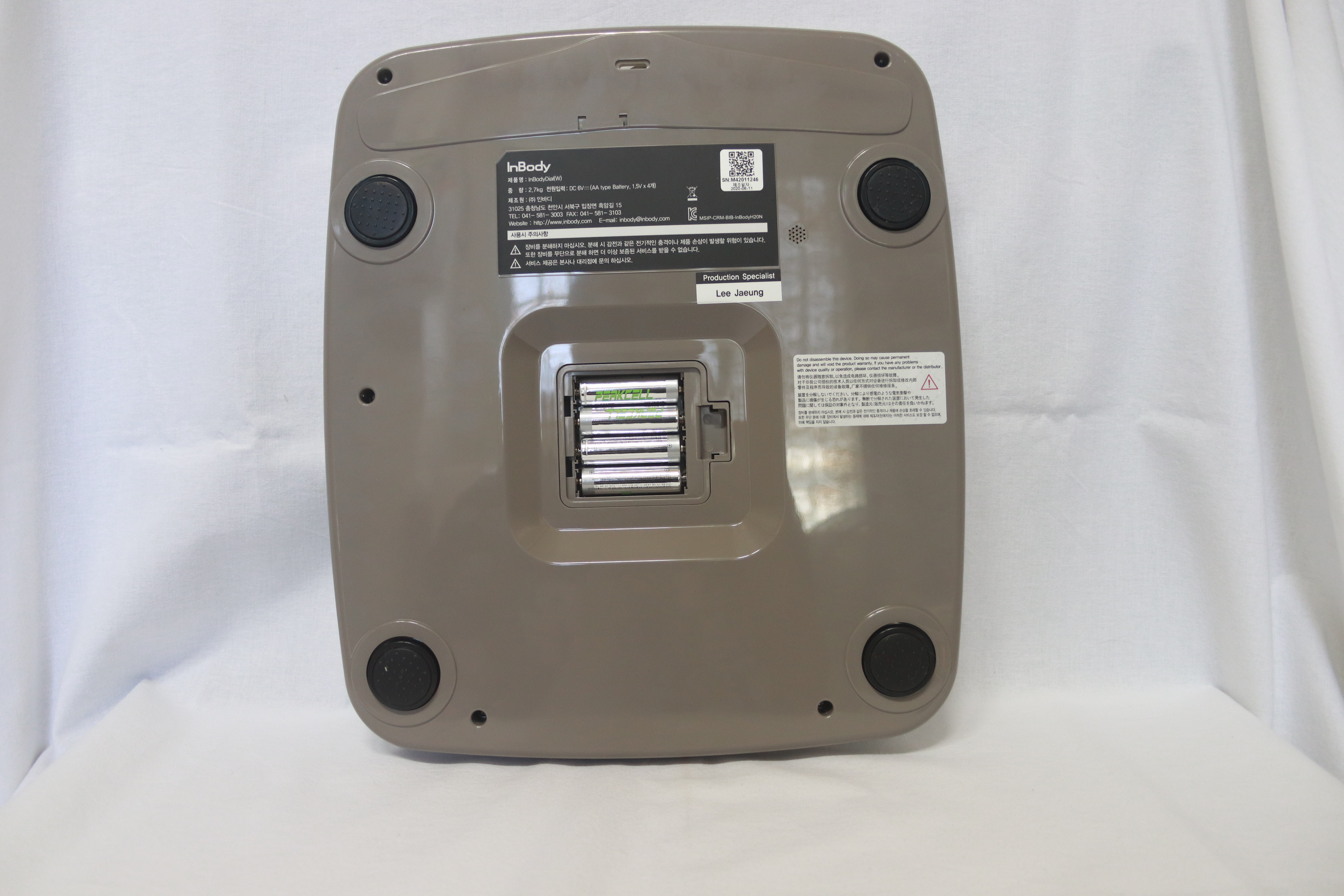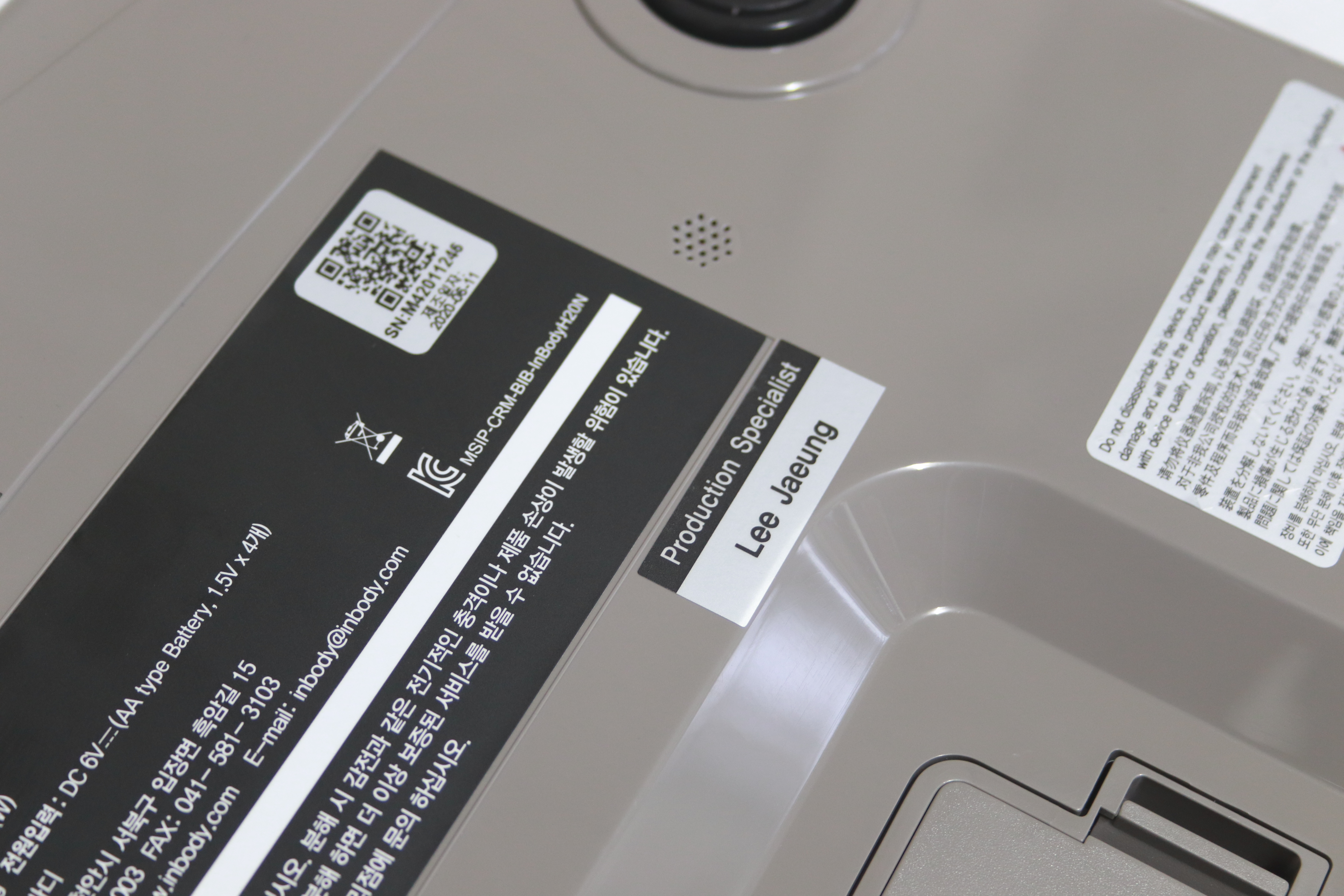 인바디는 국내에서 제조되는 제품으로 제조일자를 딱 표시해 둡니다. 제가 받은 제품은 6월 11일에 제조한 제품으로 상당히 최근에 제조된 제품을 받았습니다. 또한 제품을 만드신 분의 이름을 제품 하단에 기록해서 제품에 대한 신뢰성을 훨씬 더 높였습니다.