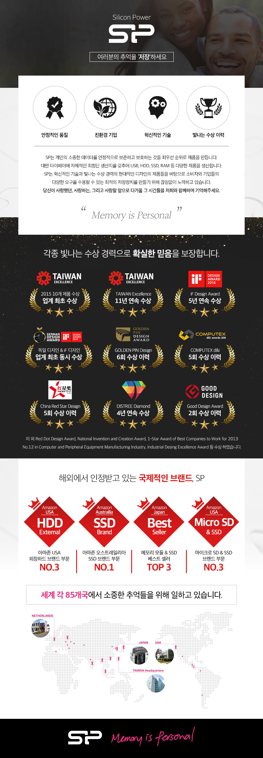 그리고 다양한 수상도 이력들이 실리콘파워의 브랜드를 더욱 유명하게 해준 것이 아닐까 생각합니다. 그리고 현재 다양한 국가에서 소중한 추억을 지켜주는 회사로 인정받고 있는 회사입니다.