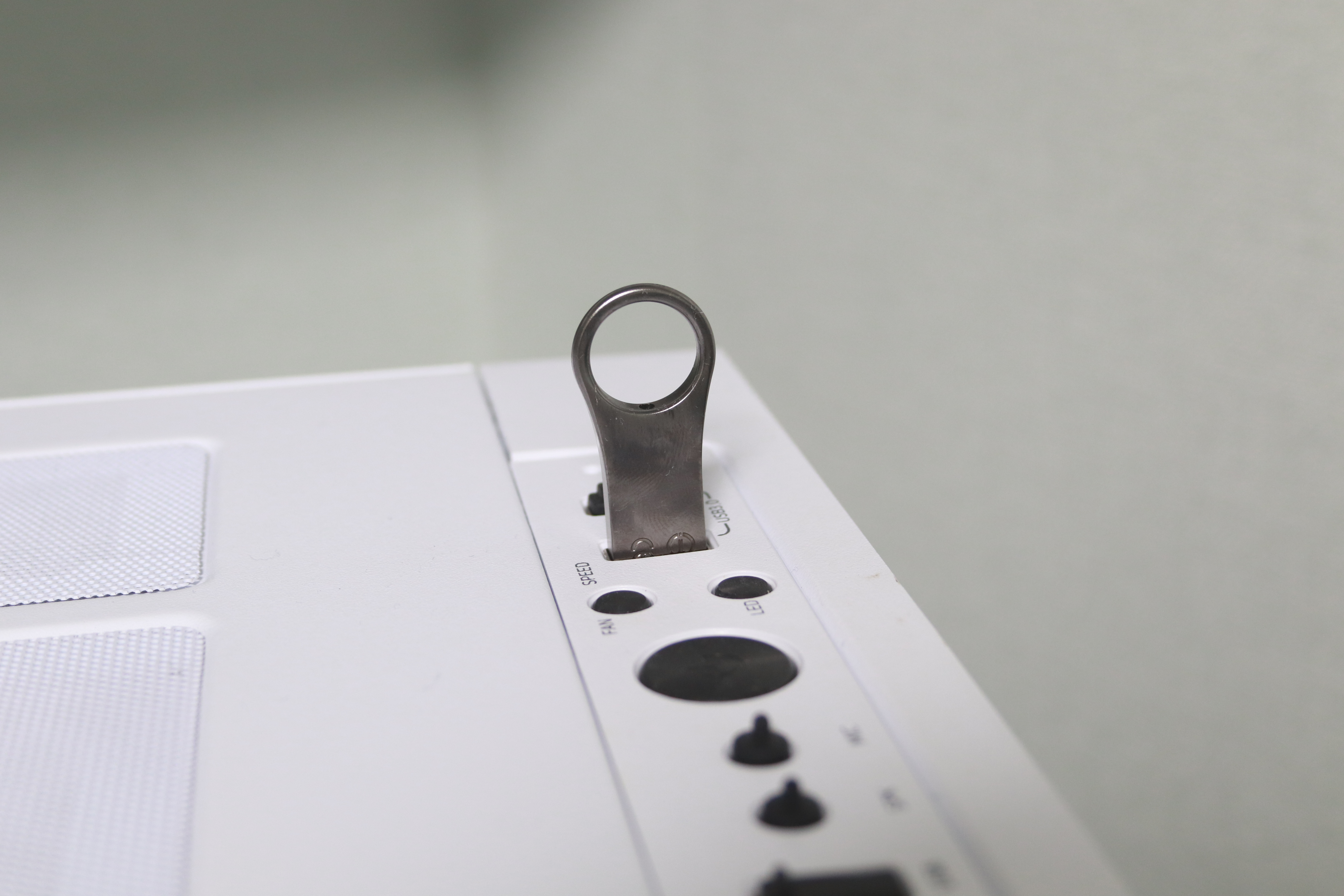 컴퓨터와 연결되는 부위는. USB3.1 특유의 푸른색으로 된 단자를 확인할 수 있고 위쪽 열쇠고리형태의 부분도 깔끔하게 둥그런 형태를 확인할 수 있습니다.